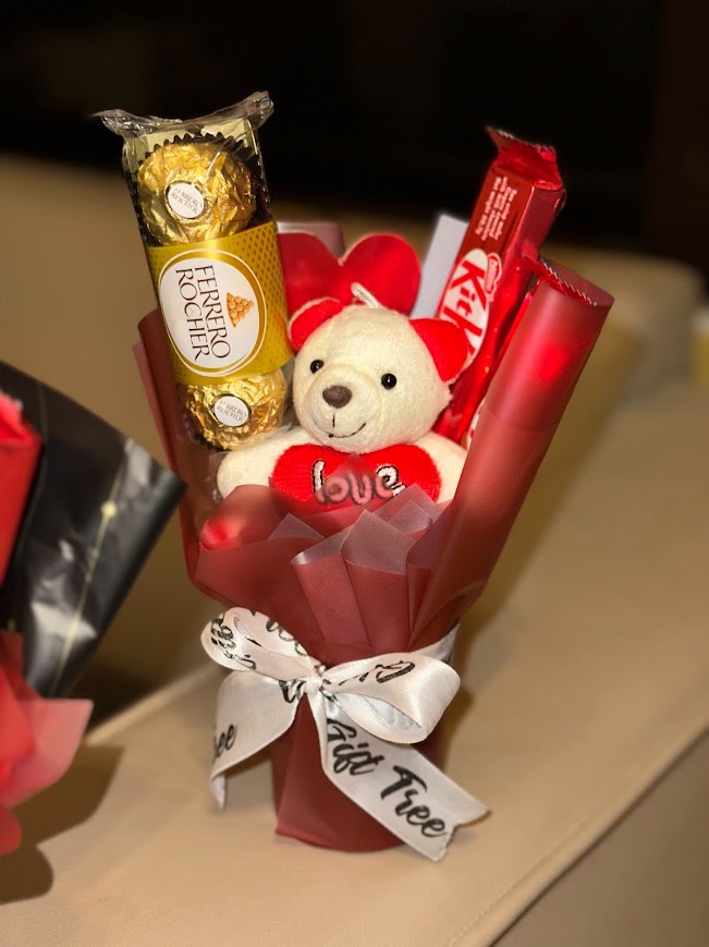 Sweet, thoughtful, and oh-so-cute, this bouquet is ideal for Valentine’s Day, anniversaries, or a simple “thinking of you” gesture. Small in size, big on love — just the way Cupid intended.