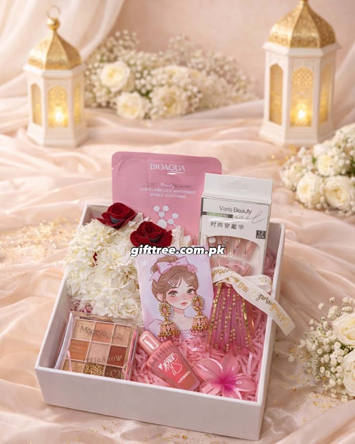 Celebrate the beauty of Eid with our Noor-e-Eid Glam Box, a thoughtfully curated festive beauty hamper designed to make her feel confident, elegant, and radiant. This soft pink luxury gift box is the perfect Eidi for daughters, sisters, wives, brides-to-be, or friends who love to dress up for Chand Raat and Eid day.