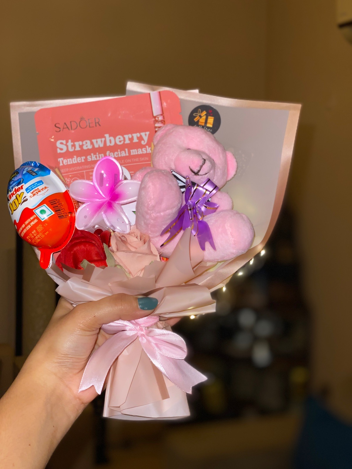 Soft, sweet, and full of charm — the Pink Bouquet is the perfect little surprise to make her smile! Beautifully wrapped and thoughtfully arranged, this mini bouquet blends sweetness, care, and a touch of cuteness in one lovely gift.